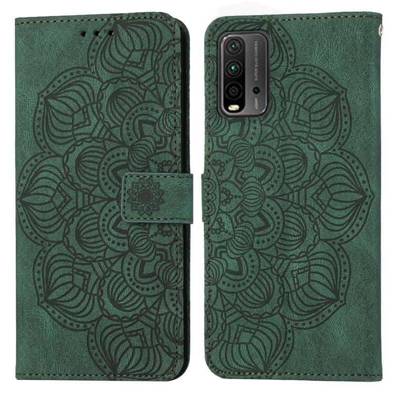 For Xiaomi Poco M3 Mandala Embossed Flip Leather Phone Case(Green)