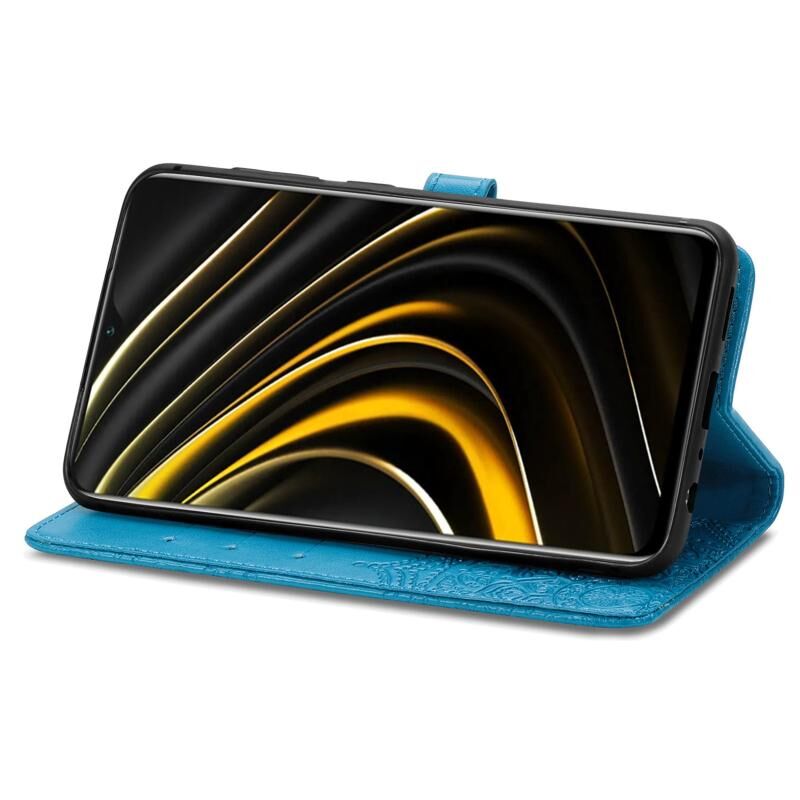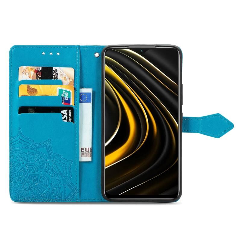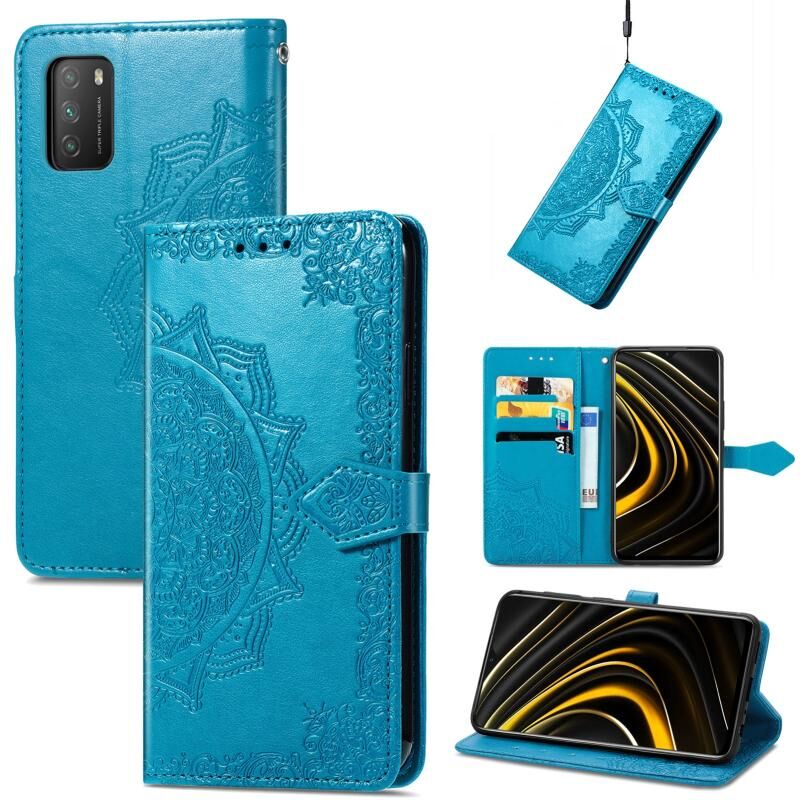 Για Xiaomi Poco M3 Mandala λουλούδι ανάγλυφο δερμάτινη θήκη τηλεφώνου (μπλε)