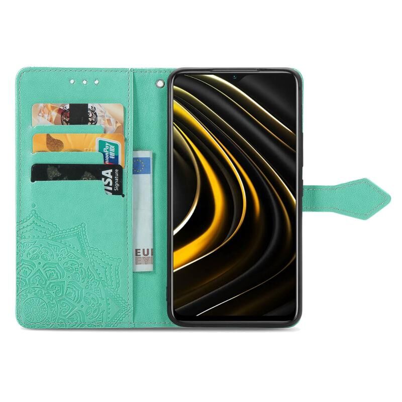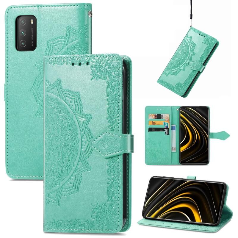 Για Xiaomi Poco M3 Mandala λουλούδι ανάγλυφο δερμάτινη θήκη τηλεφώνου (πράσινο)