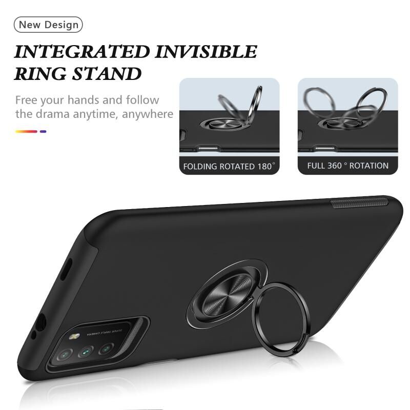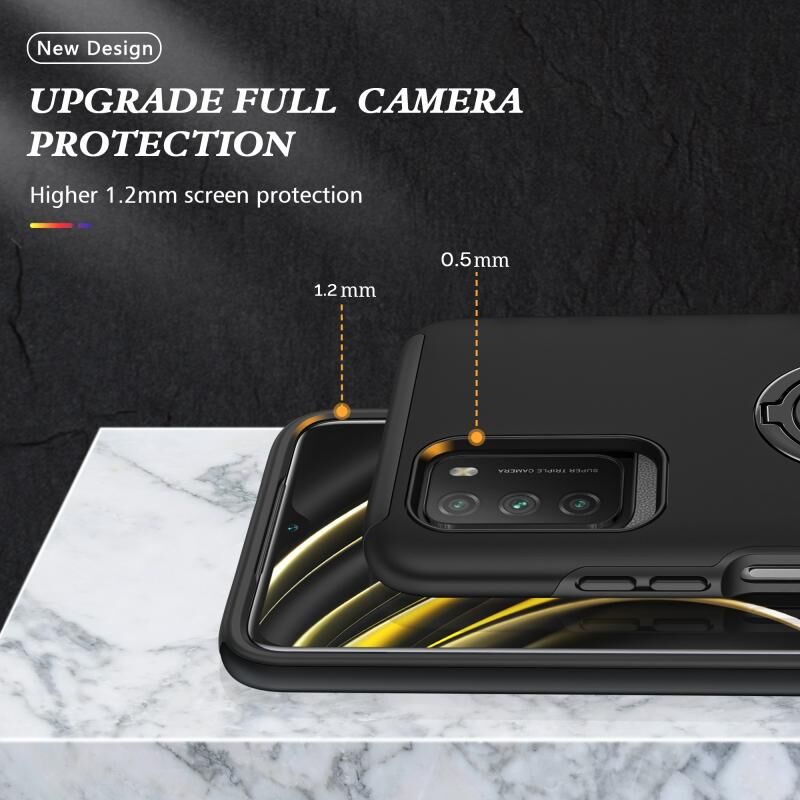 Για Xiaomi Poco M3 PC + TPU Shockproof μαγνητική προστατευτική θήκη με αόρατο δαχτυλίδι Holder (Μαύρο)