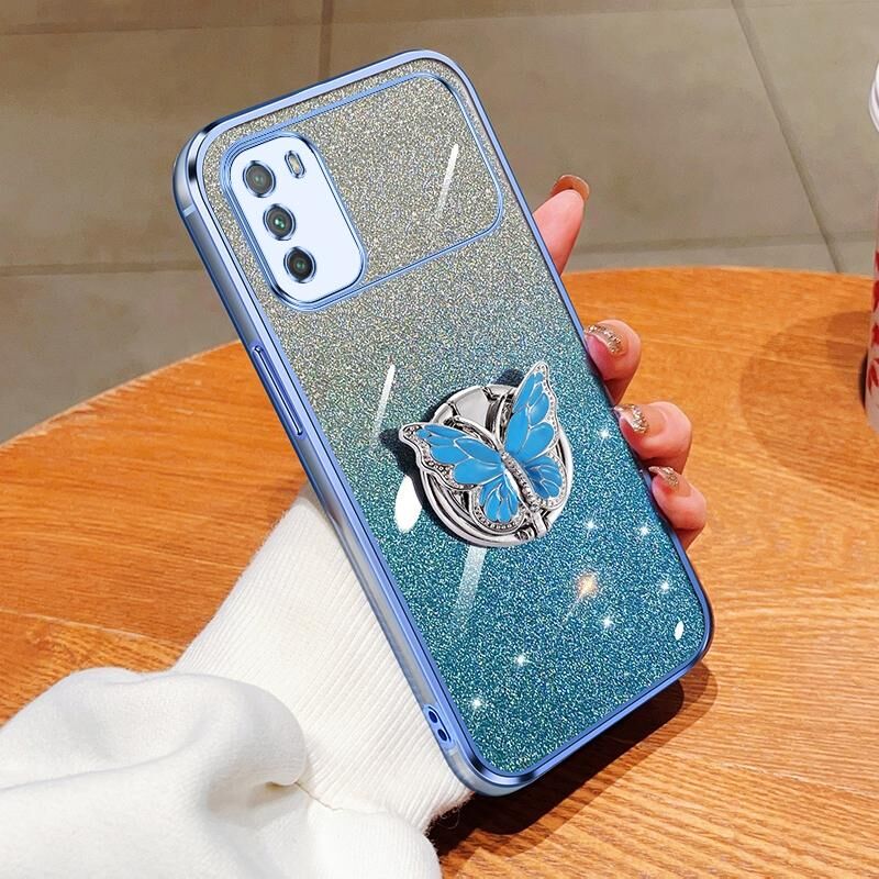 Θήκη τηλεφώνου TPU με επιμετάλλωση, διαβαθμισμένη λάμψη και σχέδιο πεταλούδας για Xiaomi Poco M3 (Ροζ)