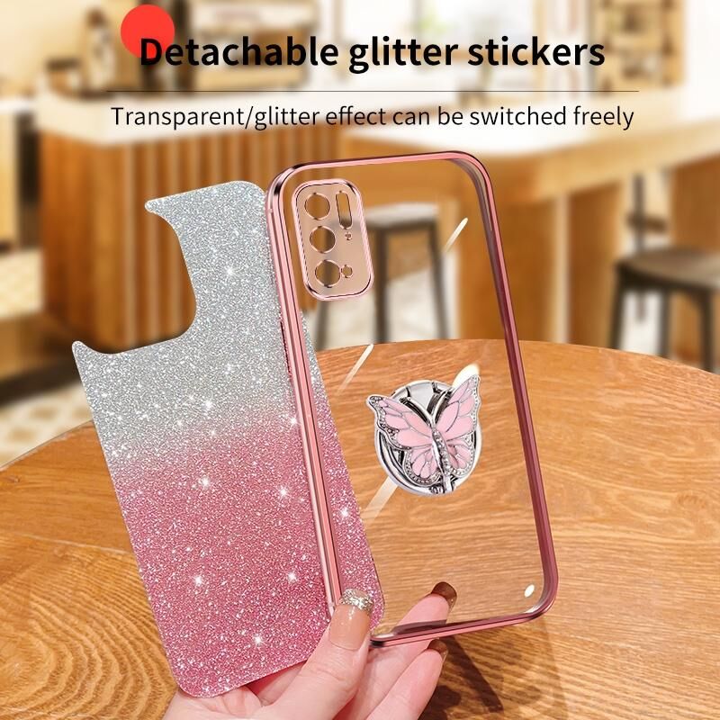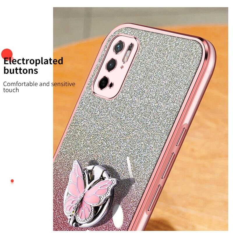 Θήκη κινητού τηλεφώνου TPU με επιμετάλλωση, διαβαθμισμένη λάμψη, πεταλούδα για Xiaomi Poco M3 Pro 5G (Μπλε Σιέρρα)
