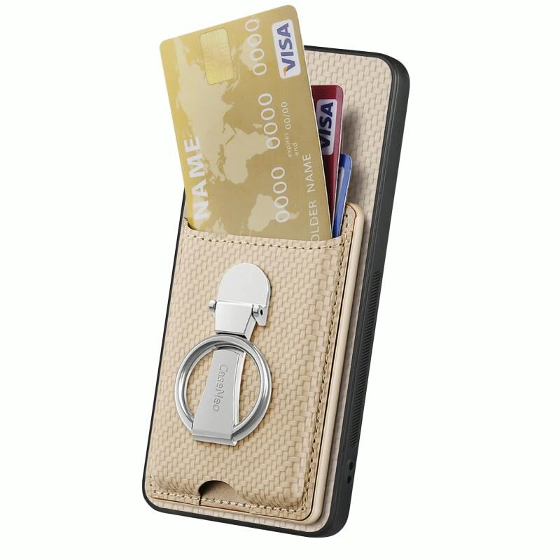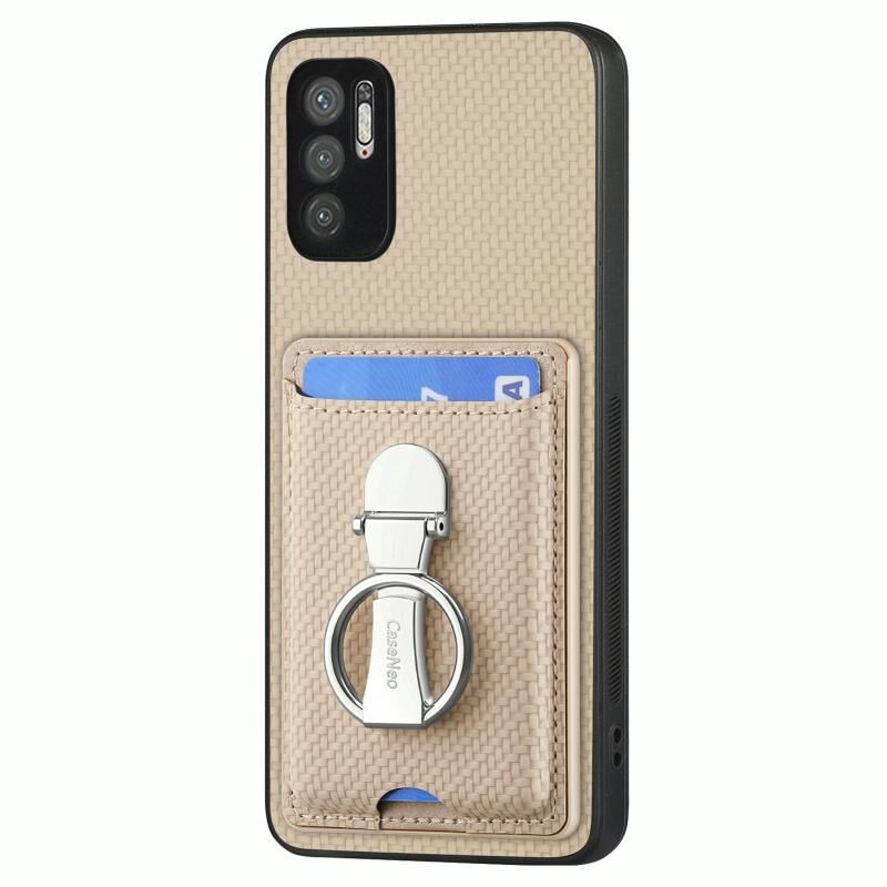 Για Xiaomi Poco M3 Pro Carbon Fiber κάρτα πορτοφόλι δαχτυλίδι κάτοχος τηλέφωνο υπόθεση (Χακί)