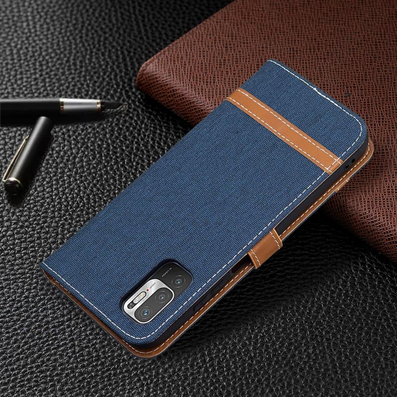 Για Xiaomi Poco M3 Pro / Redmi Note 10 5G Θήκη Δερμάτινη Οριζόντιας Αναδίπλωσης με Υφή Denim σε Αντιστοιχία Χρωμάτων με Στήριξη & Θήκες Καρτών & Πορτοφόλι & Λουρί (Σκούρο μπλε)