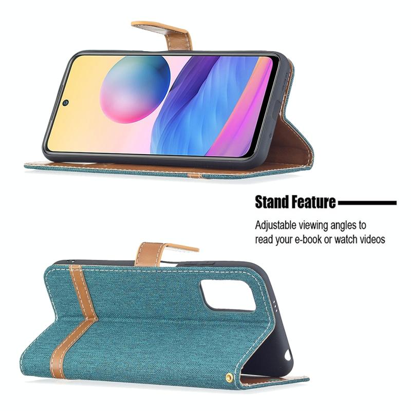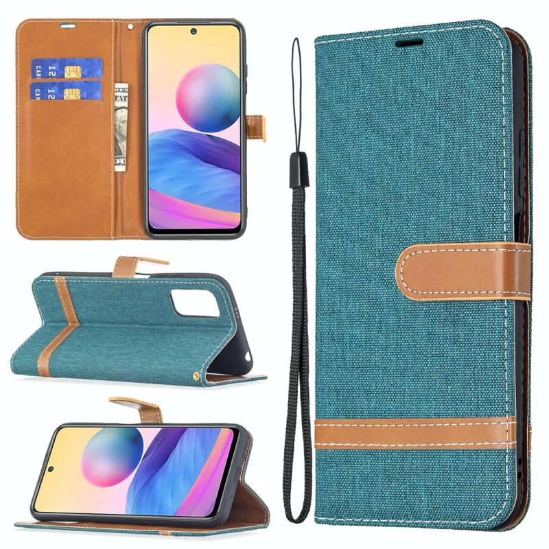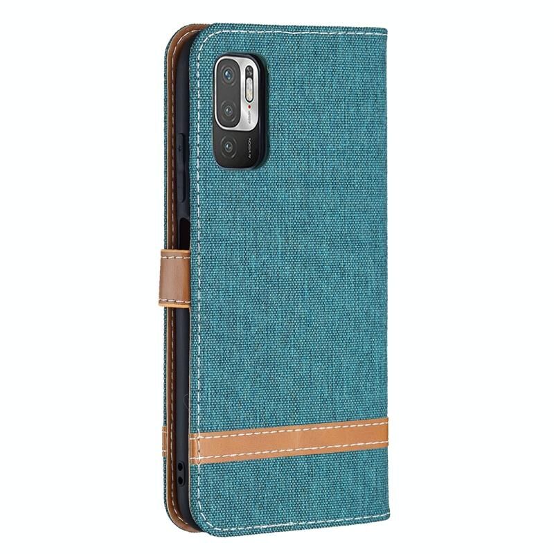 Για Xiaomi Poco M3 Pro / Redmi Note 10 5G Θήκη Δερμάτινη Οριζόντιας Αναδίπλωσης με Υφή Denim σε Αντιστοιχία Χρωμάτων με Στήριξη & Θήκες Καρτών & Πορτοφόλι & Λουρί (πράσινο)