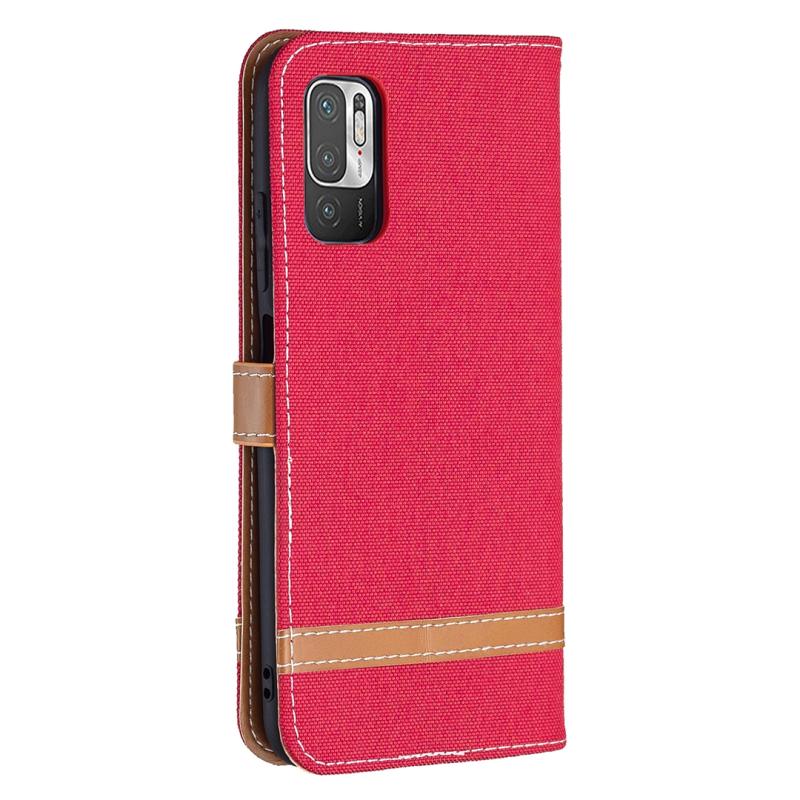 Για Xiaomi Poco M3 Pro / Redmi Note 10 5G Θήκη Δερμάτινη Οριζόντιας Αναδίπλωσης με Υφή Denim σε Αντιστοιχία Χρωμάτων με Στήριξη & Θήκες Καρτών & Πορτοφόλι & Λουρί (Κόκκινο)