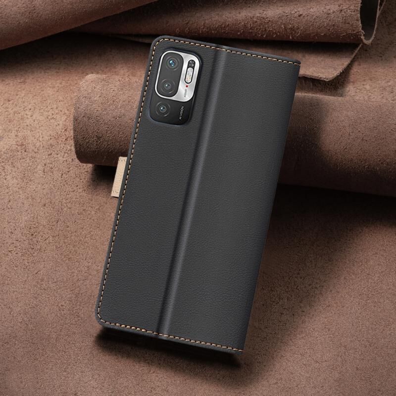 Θήκη τηλεφώνου από δέρμα με αντικλεπτική τεχνολογία RFID και χρωματική αντιστοίχιση για Xiaomi Poco M3 Pro / Redmi Note 10 5G (Μαύρο)