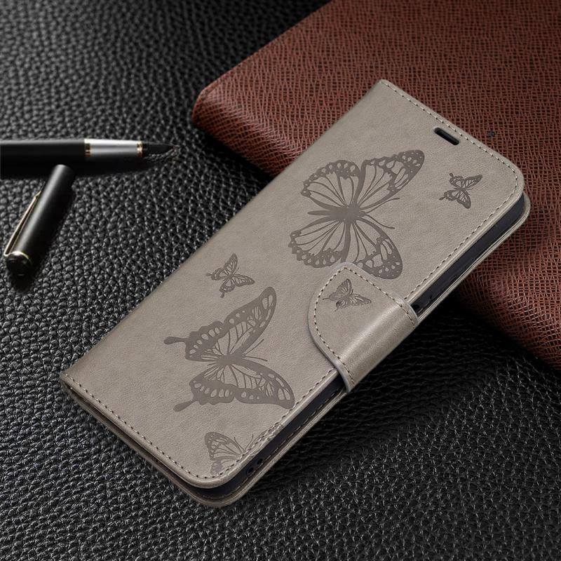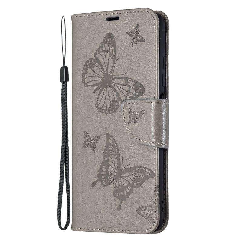 For Xiaomi Poco M3 Pro / Redmi Note 10 5G Embossing Two Butterflies Pattern Horizontal Flip PU Leather Case with Holder & Card Slot & Wallet & Lanyard(Grey)