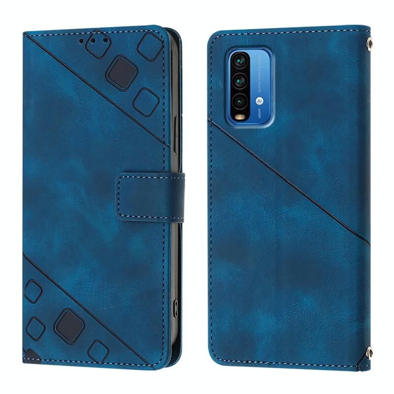 Για Xiaomi Poco M3 / Redmi 9 Power Skin Feel ανάγλυφη δερμάτινη θήκη τηλεφώνου (μπλε)