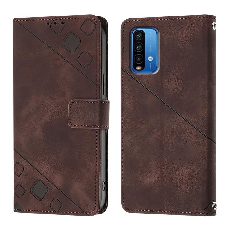 Για Xiaomi Poco M3 / Redmi 9 Power Skin Feel ανάγλυφη δερμάτινη θήκη τηλεφώνου (καφέ)