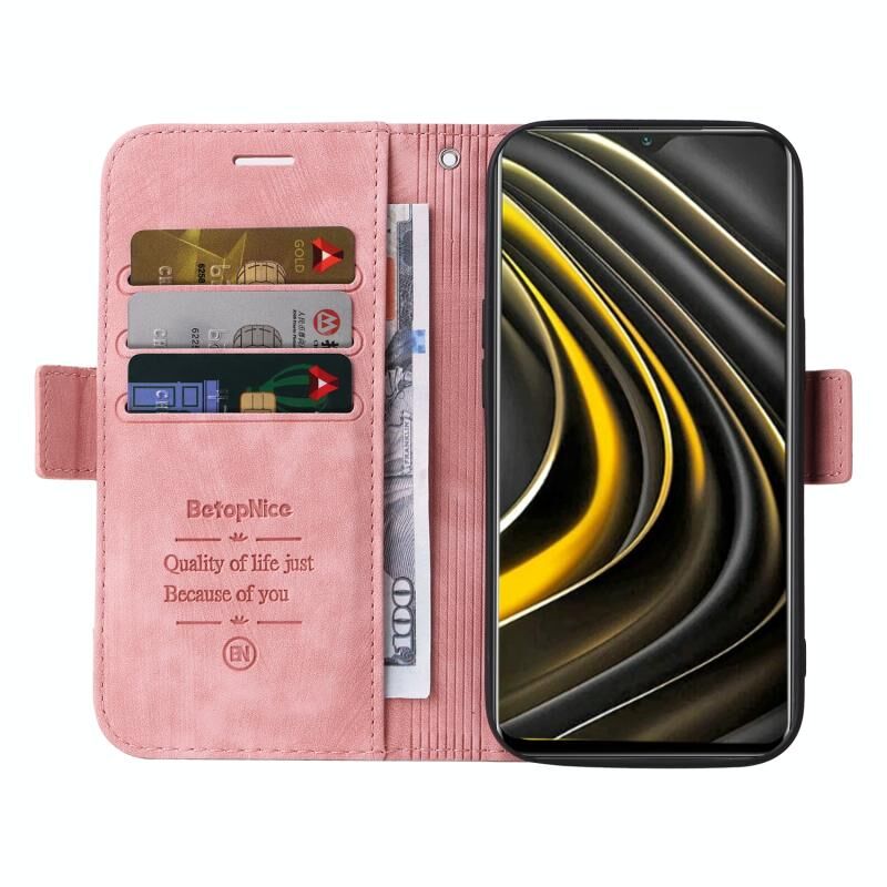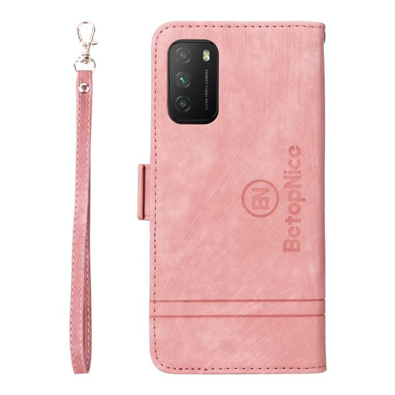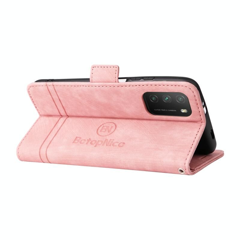 Για Xiaomi Poco M3 / Redmi 9T BETOPNICE Διπλής όψης δερμάτινη θήκη τηλεφώνου με αγκράφα (ροζ) (BETOPNICE)