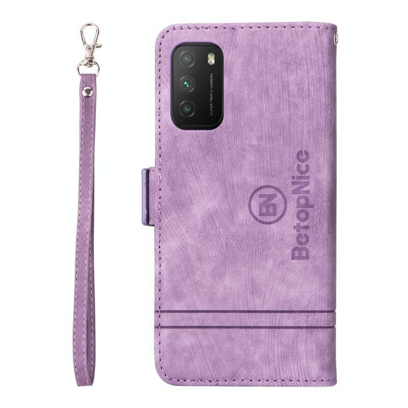 Για Xiaomi Poco M3 / Redmi 9T BETOPNICE Διπλής όψης δερμάτινη θήκη τηλεφώνου με αγκράφα (μωβ) (BETOPNICE)