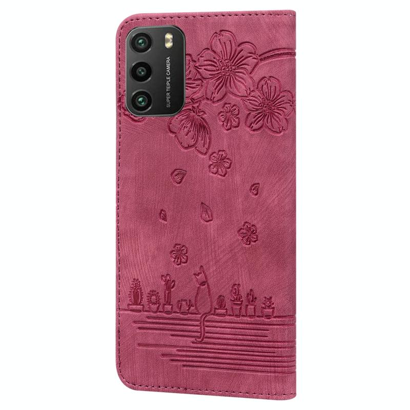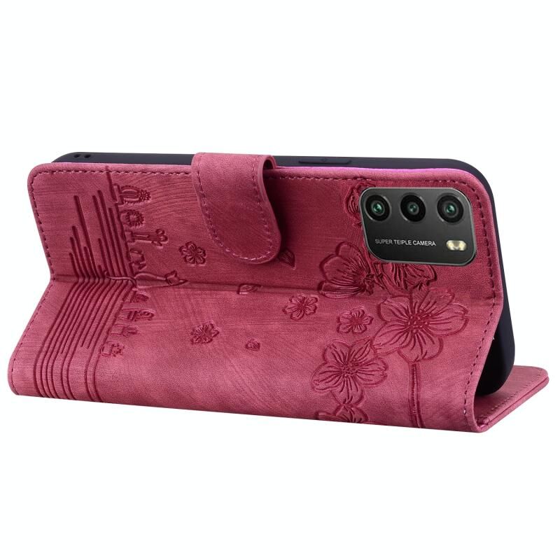 Θήκη δερμάτινη με σχέδιο Sakura Cat για Xiaomi Poco M3 / Redmi 9T (Μπορντό)