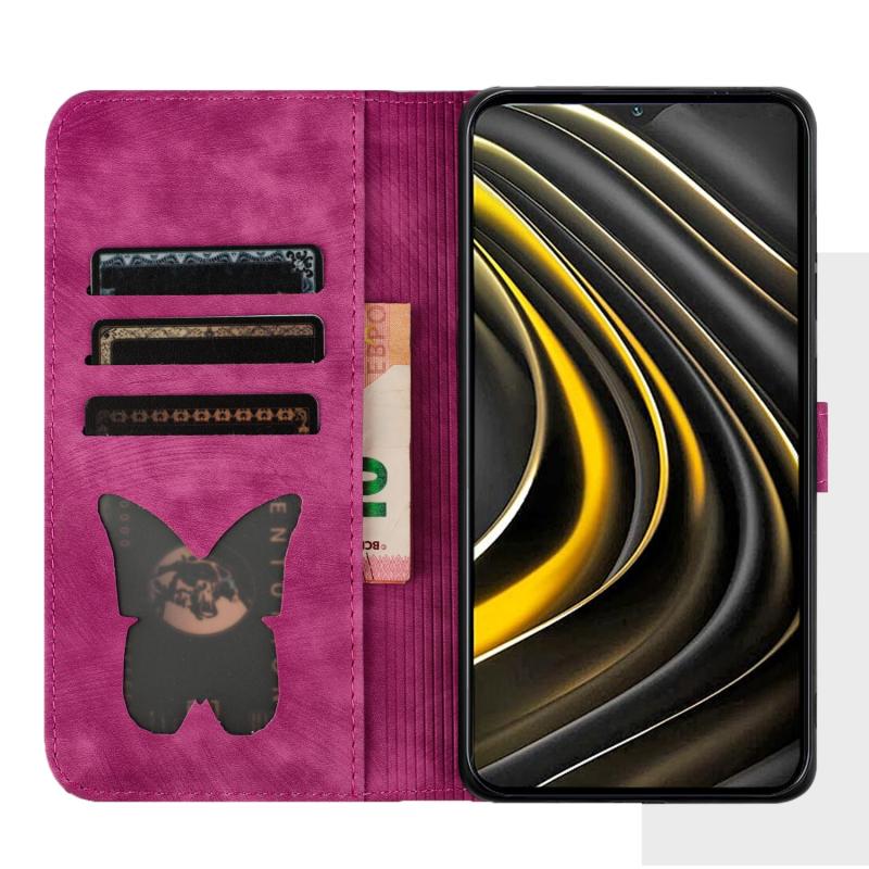 Θήκη δερμάτινη flip με ανάγλυφο σχέδιο γάτας για Xiaomi Poco M3/Redmi Note 9 4G (Ροζ)