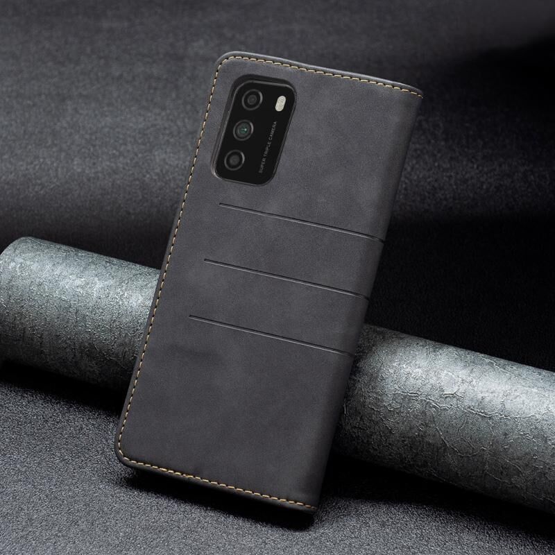 Για Xiaomi Poco M3 / Redmi Note 9 4G Μαγνητική θήκη τηλεφώνου από δέρμα (μαύρο)