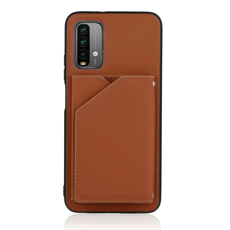 Για το Xiaomi Poco M3 / Redmi Note 9 4G Skin Feel PU + TPU + PC Back Cover Shockproof Case με υποδοχές καρτών & Holder & Photo Frame (Καφέ)
