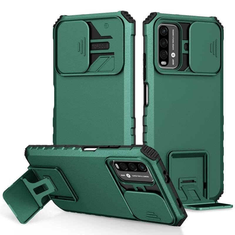 Για Xiaomi Poco M3 / Redmi Note 9 4G Στερεοσκοπική κάτοχος συρόμενη Camshield υπόθεση τηλεφώνου (σκούρο πράσινο)