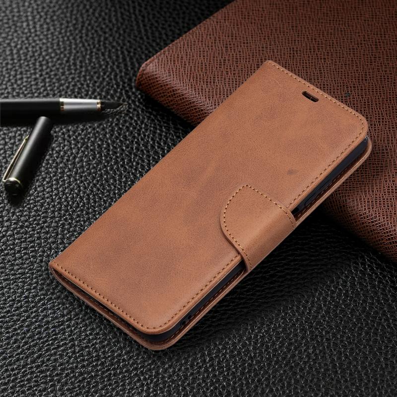 Θήκη για Xiaomi Poco M3 με υφή retro δέρματος αρνιού, απλό χρώμα, οριζόντια αναδιπλούμενη από δερματίνη PU με βάση στήριξης, θήκες για κάρτες, πορτοφόλι & κορδόνι (Καφέ)