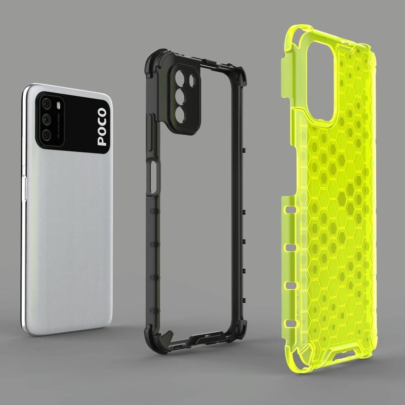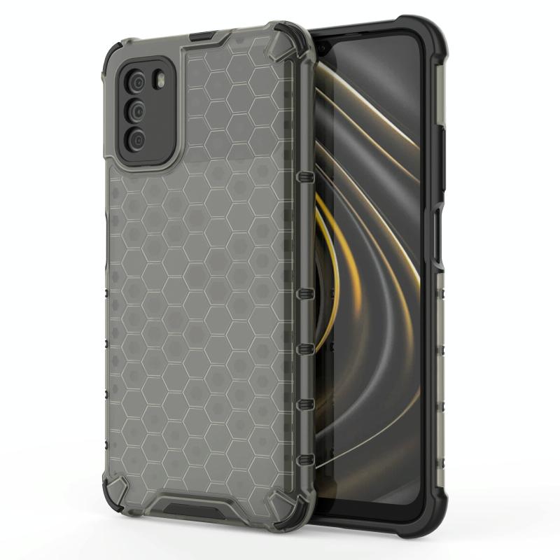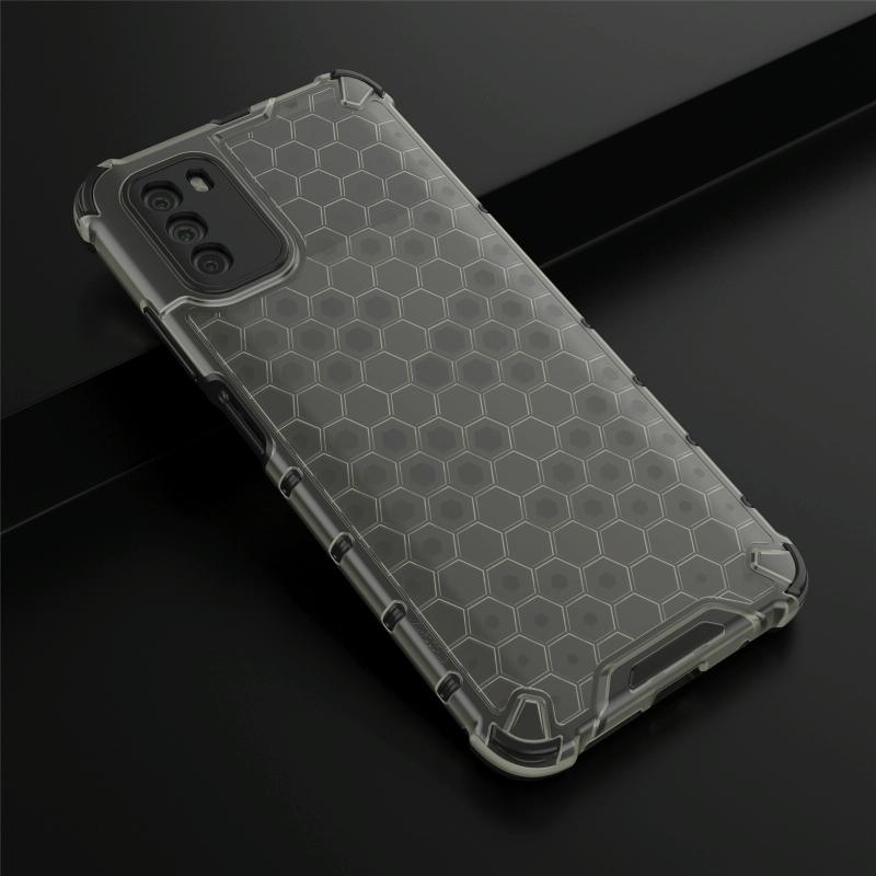 Θήκη για Xiaomi Poco M3 ανθεκτική στις κρούσεις, από PC + TPU σε κυψελωτό σχέδιο (Μαύρο)