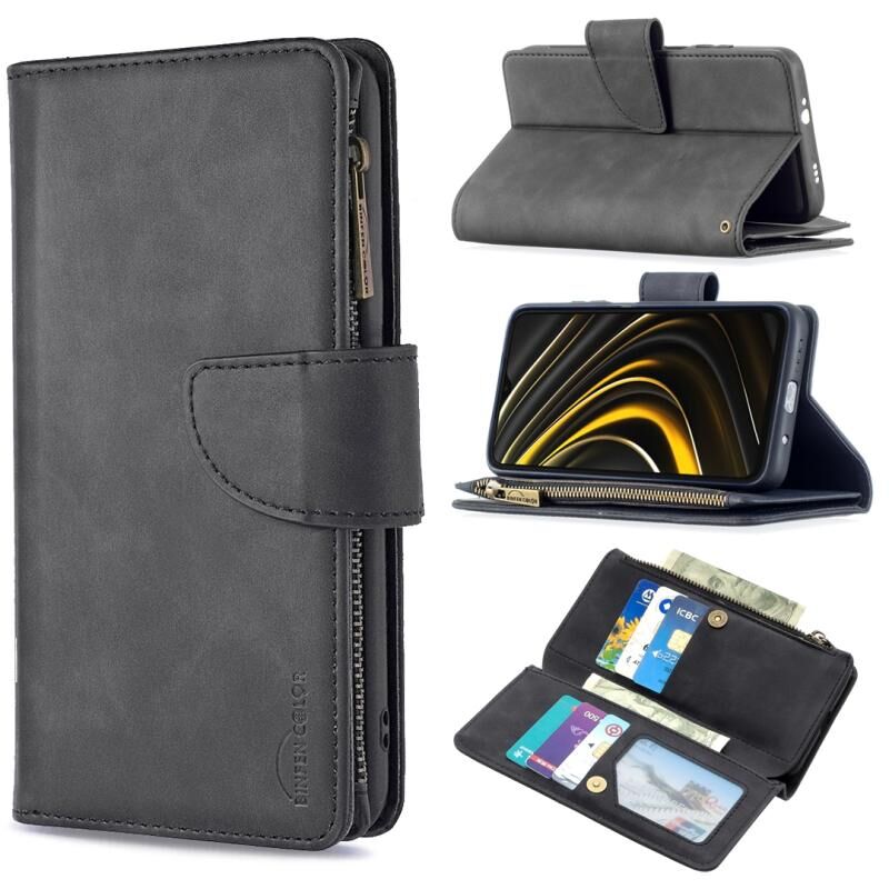 Για το Xiaomi Poco M3 Skin Feel Αποσπώμενο μαγνητικό φερμουάρ Οριζόντια Flip PU δερμάτινη θήκη με υποδοχές πολλαπλών καρτών & κάτοχος & πορτοφόλι & πλαίσιο φωτογραφιών & κορδόνι (μαύρο)