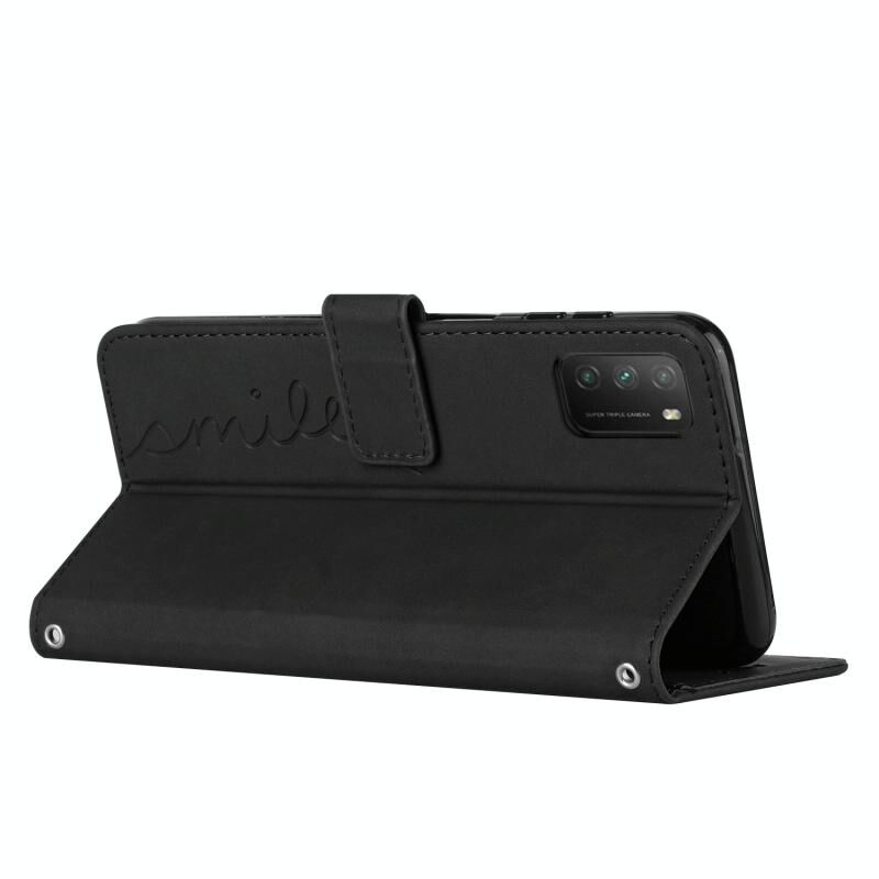 Για Xiaomi Poco M3 δέρμα αίσθηση καρδιά μοτίβο δερμάτινη θήκη τηλεφώνου με κορδόνι (Μαύρο)