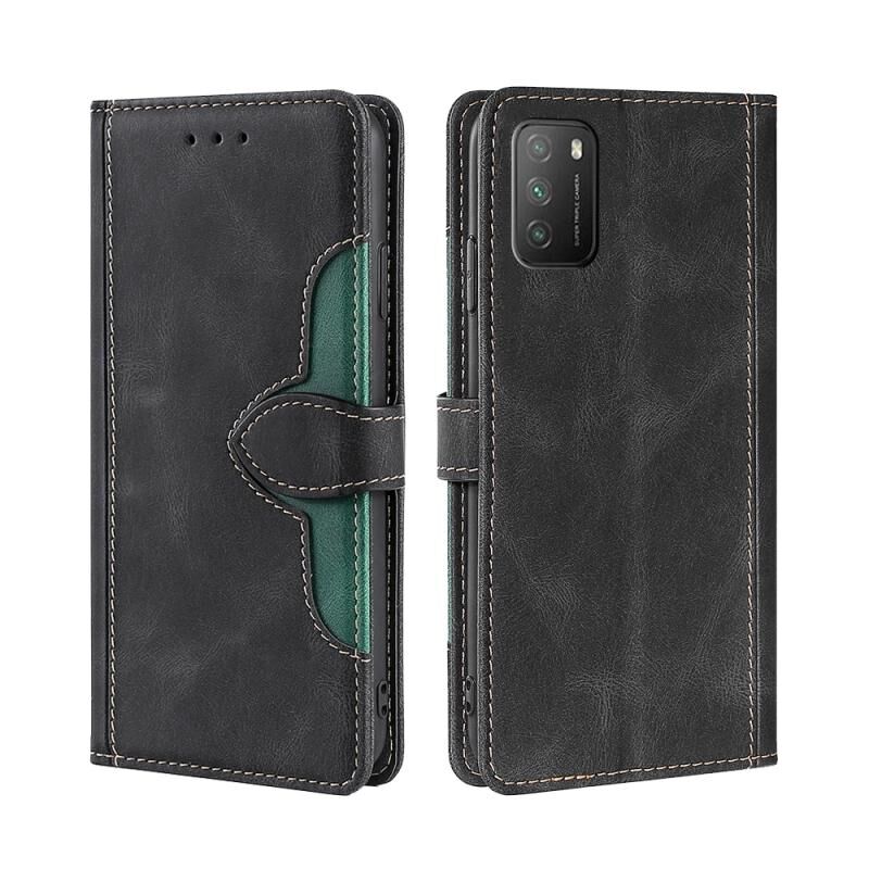 Για Xiaomi Poco M3 δέρμα αίσθηση Straw καπέλο μαγνητική πόρπη δερμάτινη θήκη τηλεφώνου (Μαύρο)
