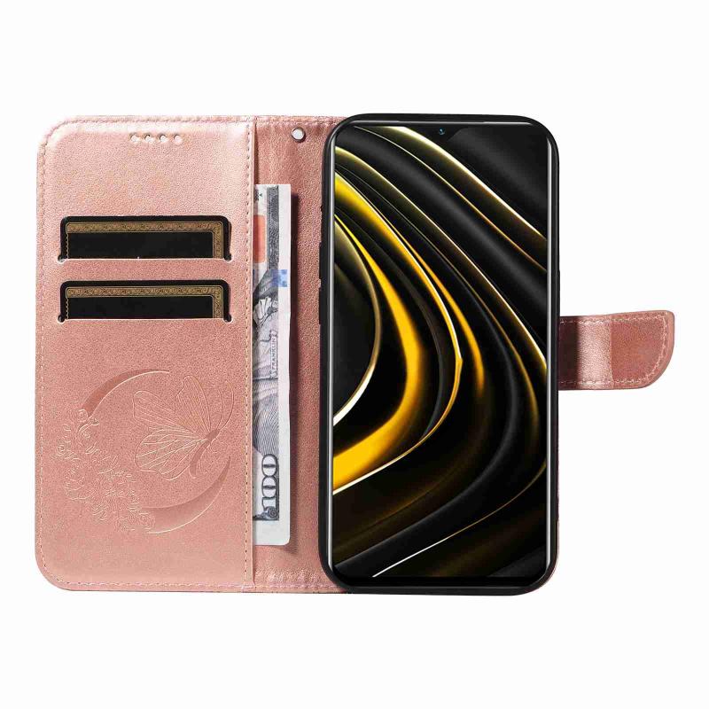 For Xiaomi Poco M3 Swallowtail Butterfly Embossed Leather Phone Case(Rose Gold)