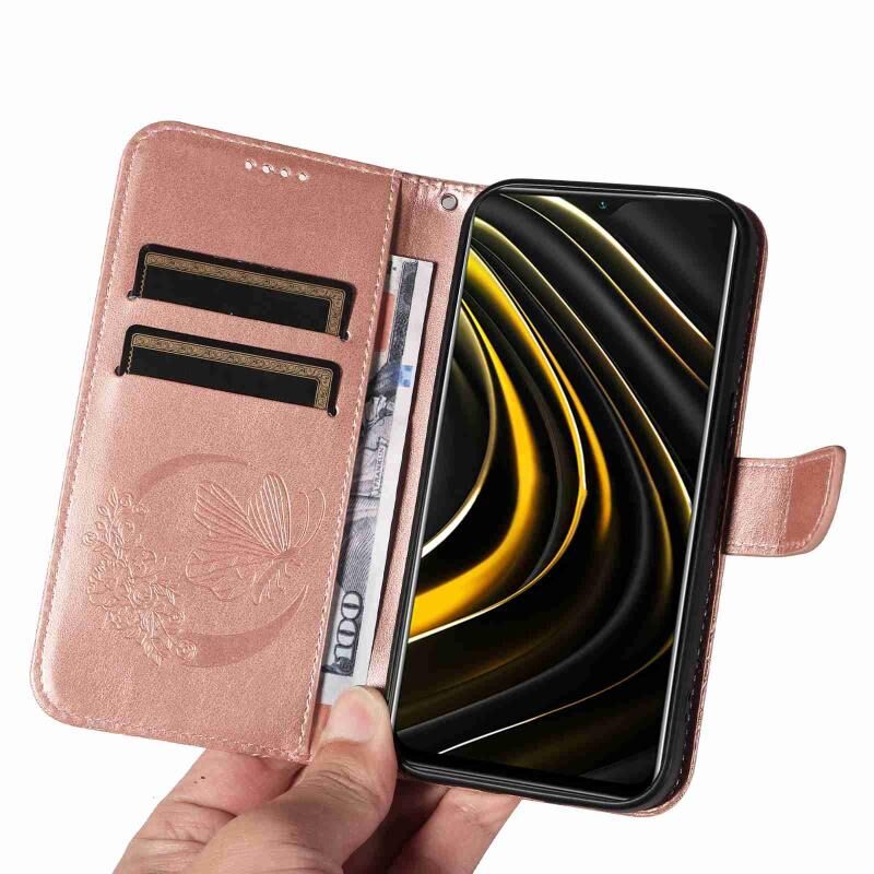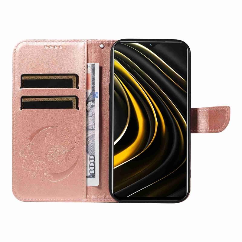 Θήκη τηλεφώνου δερμάτινη με ανάγλυφο σχέδιο πεταλούδας για Xiaomi Poco M3 (Μπλε)