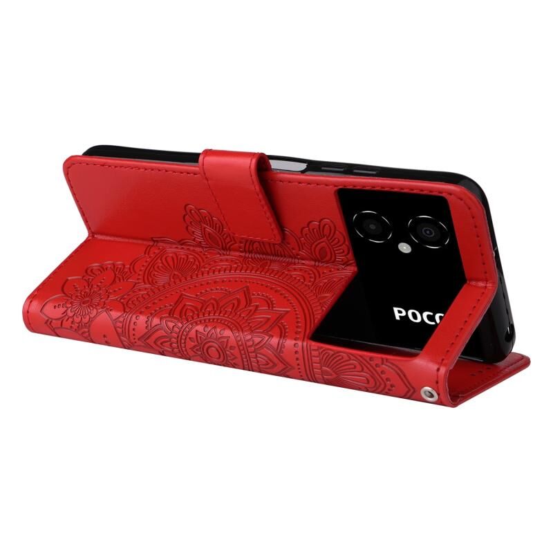 Θήκη τηλεφώνου από δέρμα με ανάγλυφα 7 πέταλα λουλουδιών για Xiaomi Poco M4 5G (Κόκκινο)