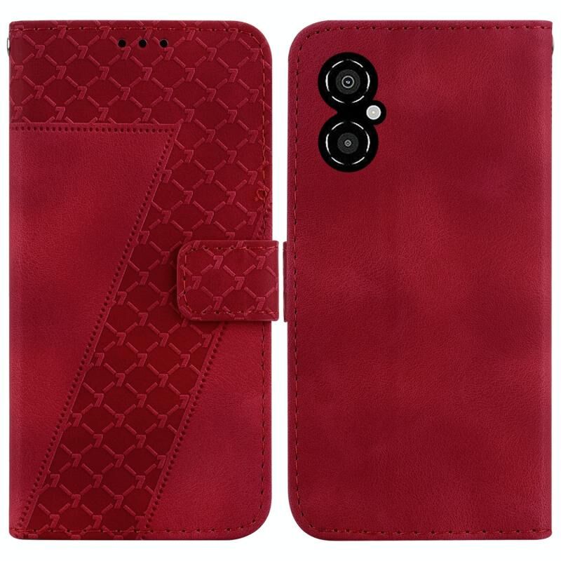 Για Xiaomi Poco M4 5G 7-σχήμα ανάγλυφη δερμάτινη θήκη τηλεφώνου (κόκκινο)