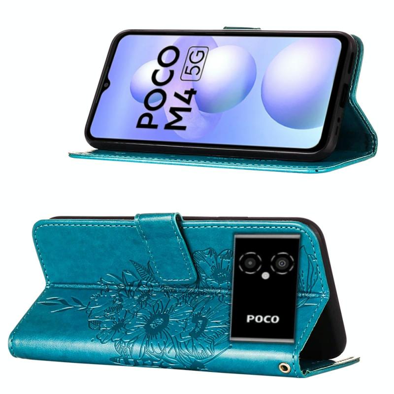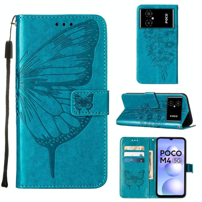 Θήκη τηλεφώνου δερμάτινη με ανάγλυφο σχέδιο πεταλούδας για Xiaomi Poco M4 5G (Κόκκινο)