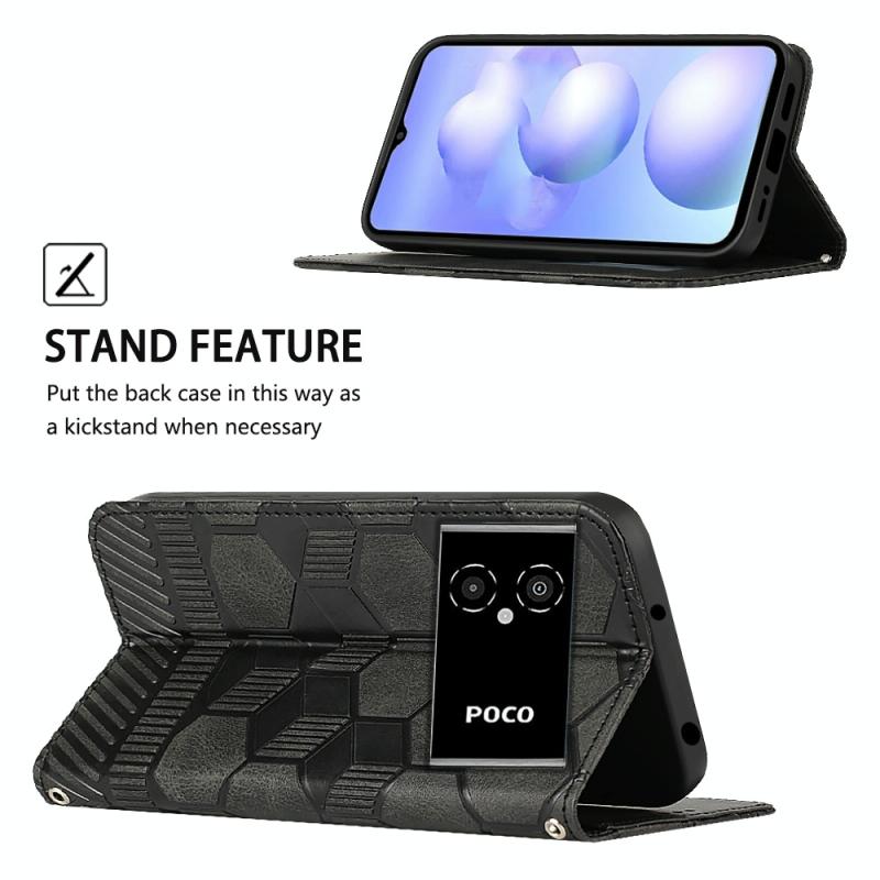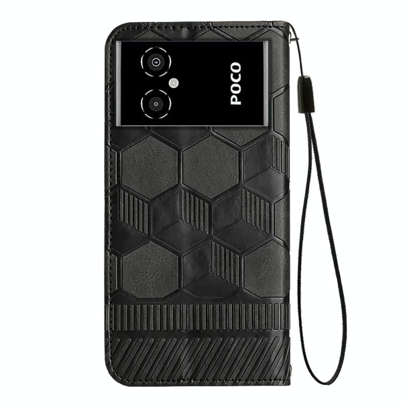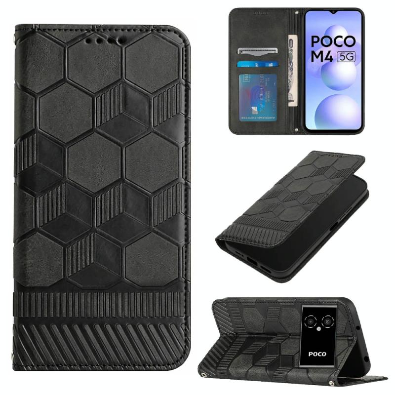 Για Xiaomi Poco M4 5G Θήκη Δερμάτινη Μαγνητική με Υφή Ποδοσφαίρου (Μαύρο)