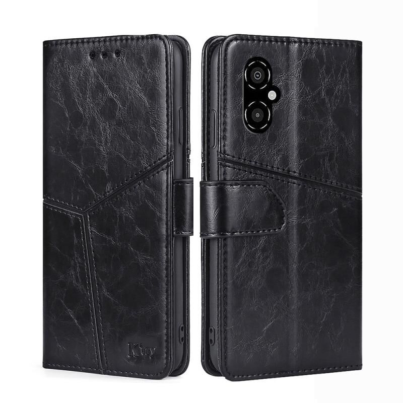 Για Xiaomi Poco M4 5G γεωμετρική ραφή οριζόντια Flip υπόθεση τηλεφώνου δέρματος (μαύρο)