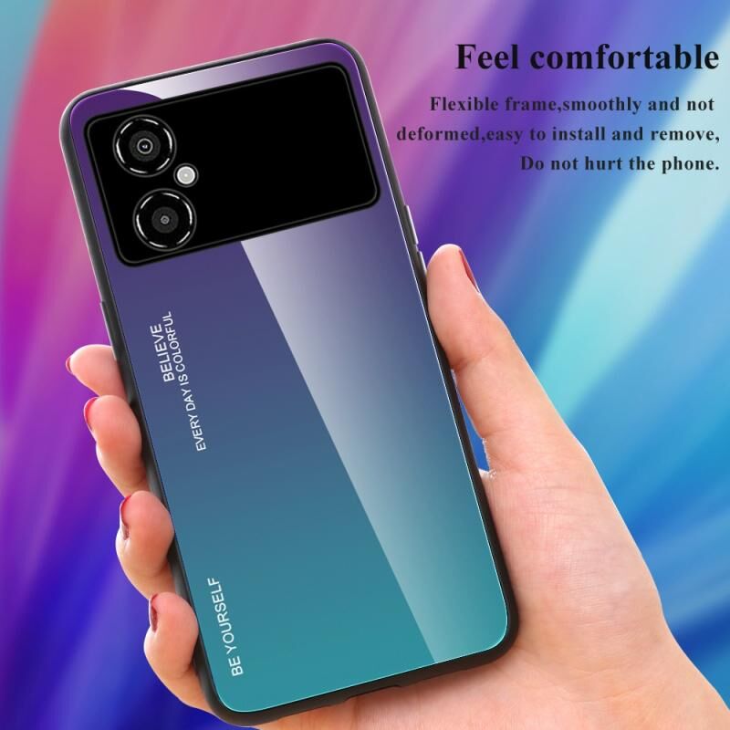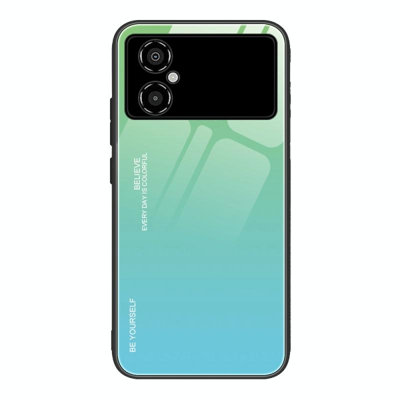 Θήκη τηλεφώνου από γυαλί με διαβαθμιστικό χρώμα για Xiaomi Poco M4 5G Global (Πράσινο κυανό)