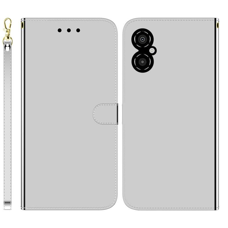 Για Xiaomi Poco M4 5G απομίμηση Mirror Surface Flip δέρμα τηλέφωνο υπόθεση (ασημί)