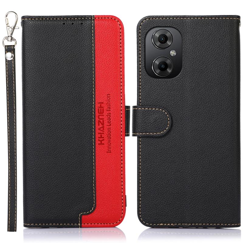 Για Xiaomi Poco M4 5G KHAZNEH Δερμάτινη Θήκη με Υφή Litchi & RFID (Μαύρο)