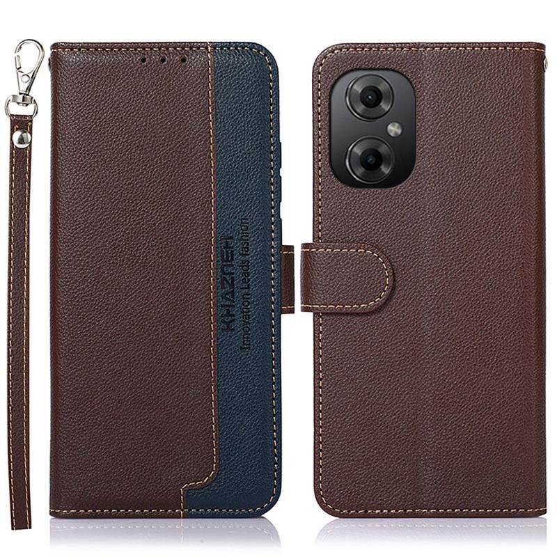 Για Xiaomi Poco M4 5G KHAZNEH Δερμάτινη Θήκη με Υφή Litchi & RFID (Καφέ)