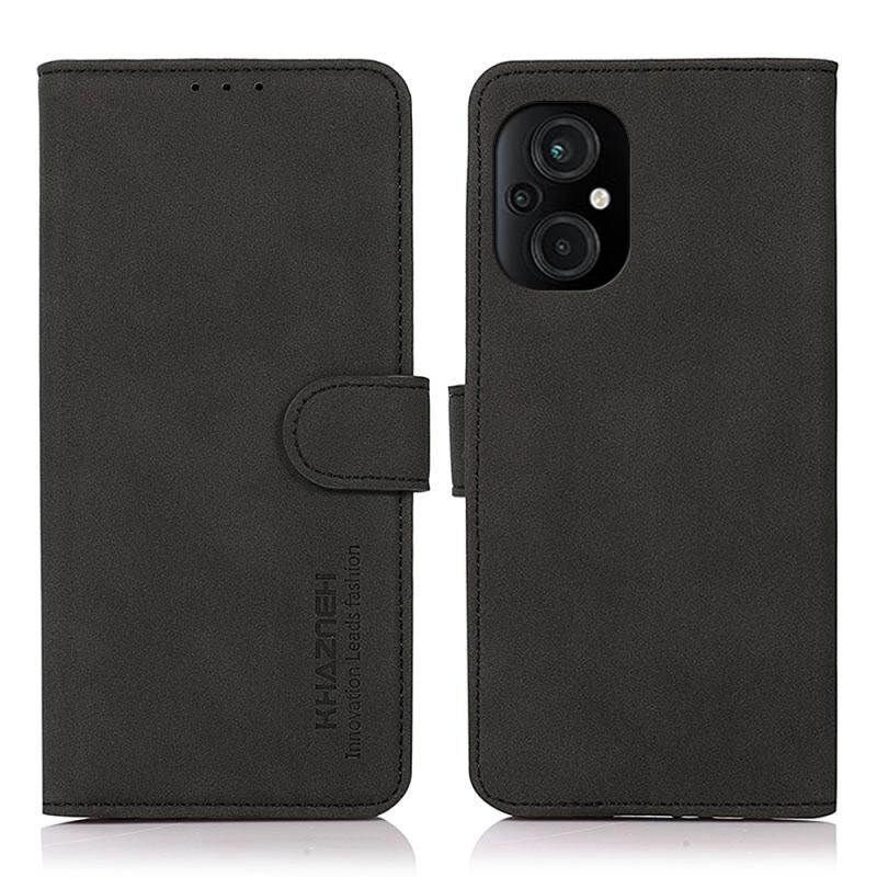 Θήκη τηλεφώνου από δέρμα με ματ υφή KHAZNEH για Xiaomi Poco M4 5G/M5 5G (Μαύρο)