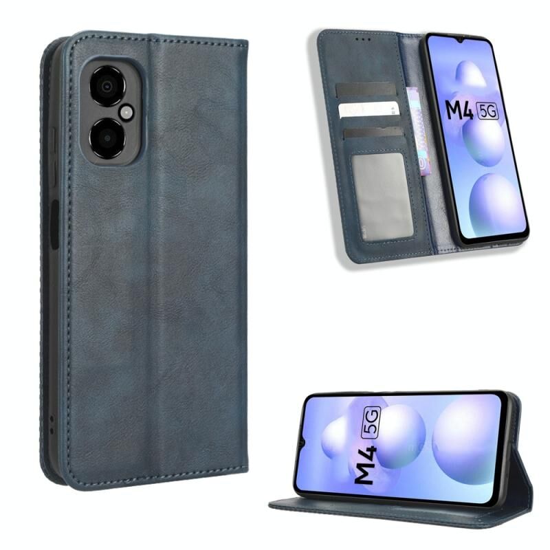 Για Xiaomi Poco M4 5G Μαγνητική πόρπη ρετρό υφή δερμάτινη θήκη τηλεφώνου (μπλε)