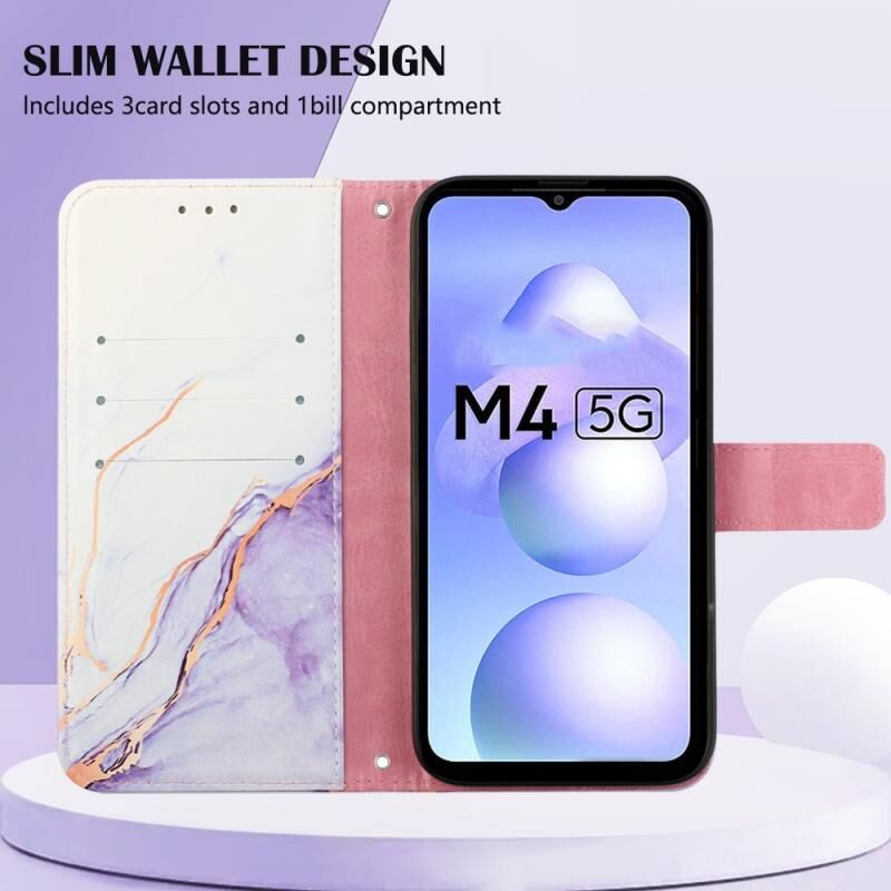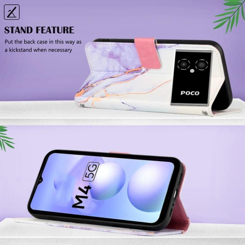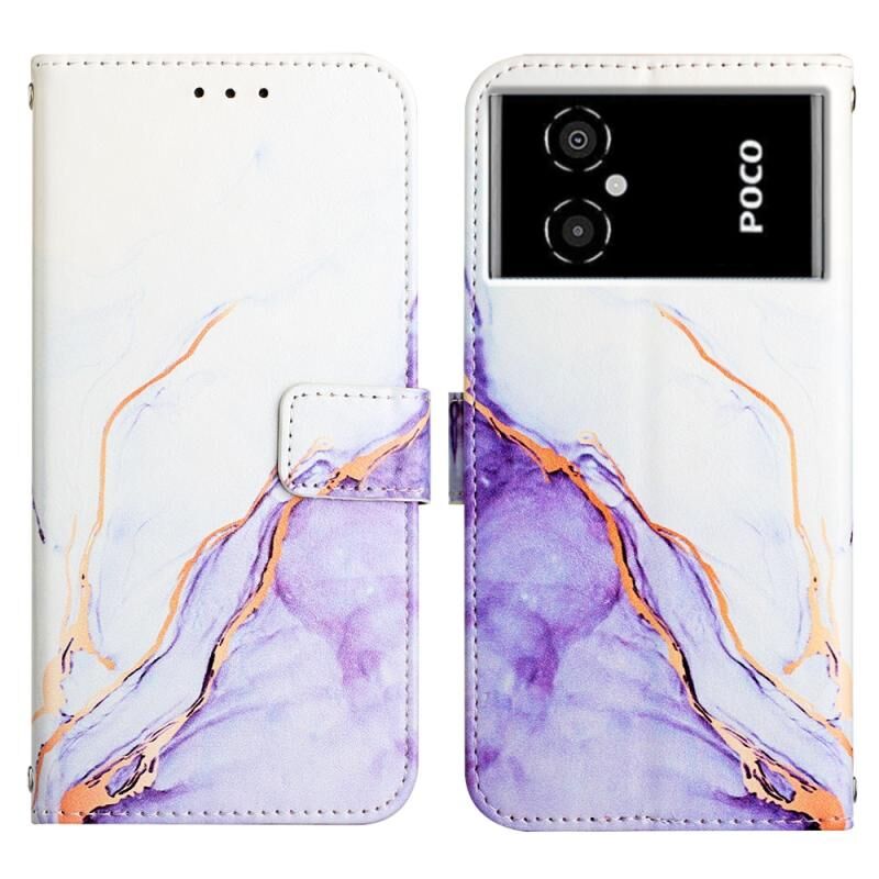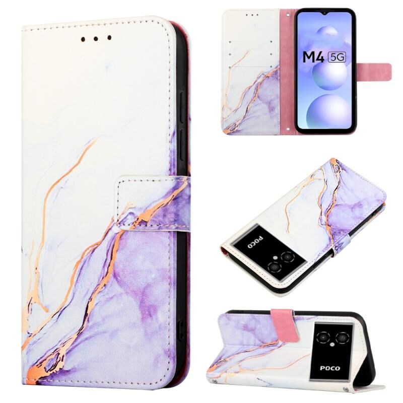 Θήκη τηλεφώνου από δέρμα με σχέδιο μαρμάρου για Xiaomi Poco M4 5G (Λευκό-Μωβ LS006)