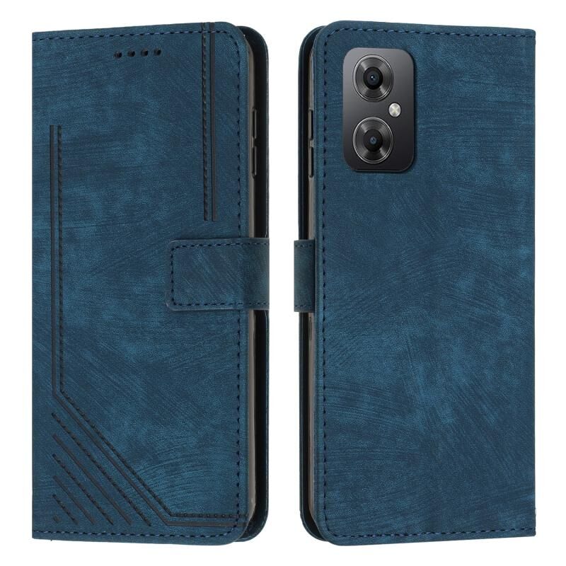 Για Xiaomi Poco M4 5G / Poco M5 4G δέρμα αίσθηση λωρίδα μοτίβο δερμάτινη θήκη τηλεφώνου με κορδόνι (μπλε)