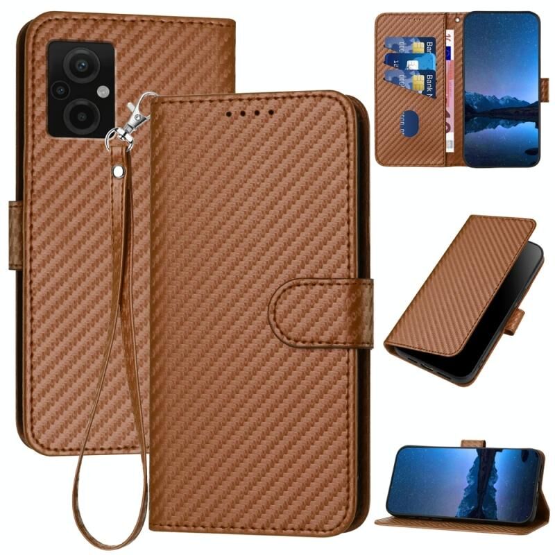 Για Xiaomi Poco M4 5G / Poco M5 4G YX0070 Carbon Fiber πόρπη δερμάτινη θήκη τηλεφώνου με κορδόνι (καφέ)