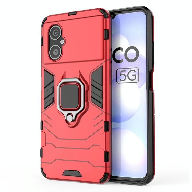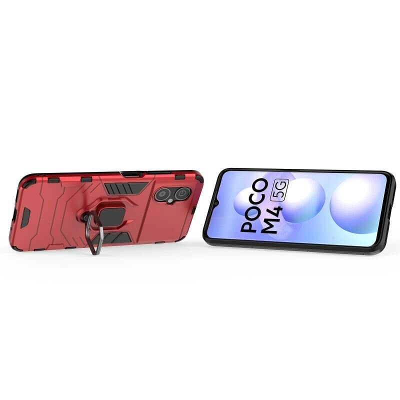 Για Xiaomi Poco M4 5G / Poco M5 5G / 4G Αδιάβροχη θήκη τηλεφώνου PC + TPU με μαγνητική θήκη δακτυλίου (κόκκινο)