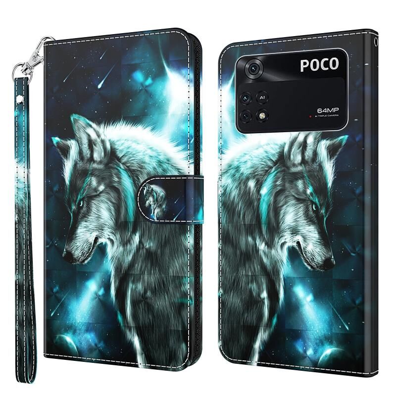 Θήκη κινητού τηλεφώνου για Xiaomi Poco M4 Pro, με σχέδιο 3D ζωγραφικής, TPU + Δερμάτινη PU (Λύκος)