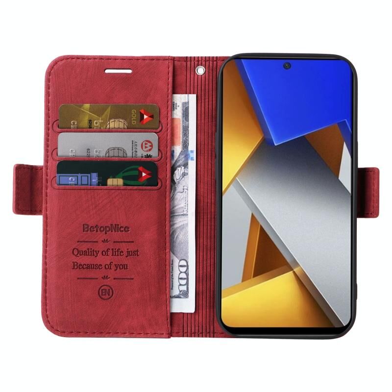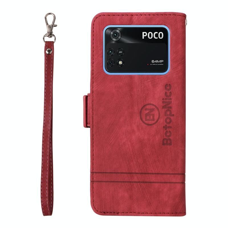 Για Xiaomi Poco M4 Pro 4G BETOPNICE Διπλής όψης δερμάτινη θήκη τηλεφώνου με αγκράφα (κόκκινο) (Κόκκινο)
