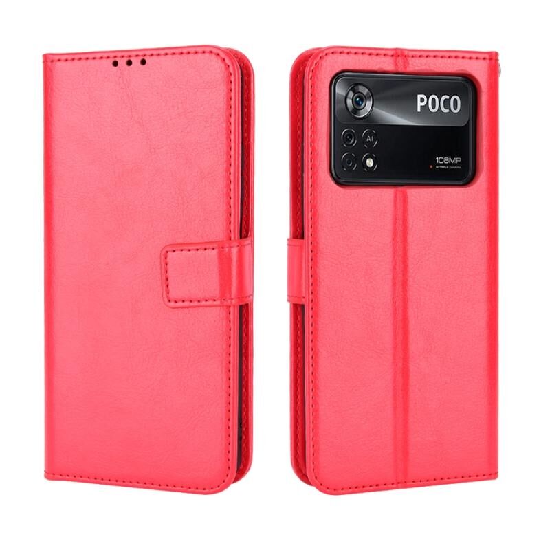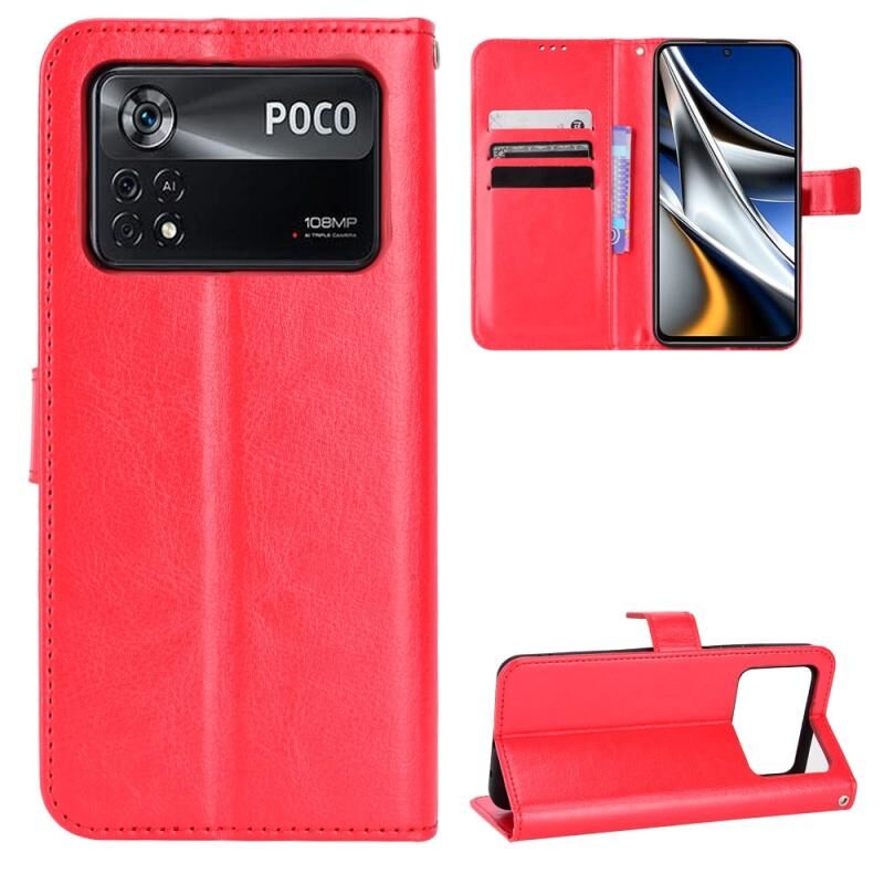 Θήκη δέρματος οριζόντιας αναδίπλωσης για Xiaomi Poco M4 Pro 4G με υφή Crazy Horse (Χρυσό)