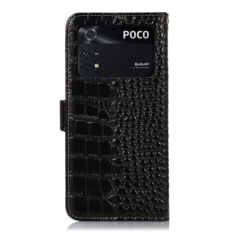 Θήκη δερμάτινη για Xiaomi Poco M4 Pro 4G από γνήσιο δέρμα κροκόδειλου (Μαύρο)