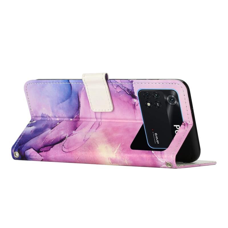 Θήκη τηλεφώνου δερμάτινη με σχέδιο μαρμάρου βαμμένο, για Xiaomi Poco M4 Pro 4G (Μωβ)