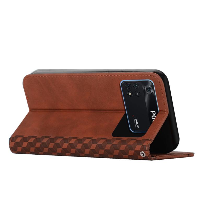 Για Xiaomi Poco M4 Pro 4G Μαγνητική Δερμάτινη Θήκη με Υφή Diamond (Καφέ)