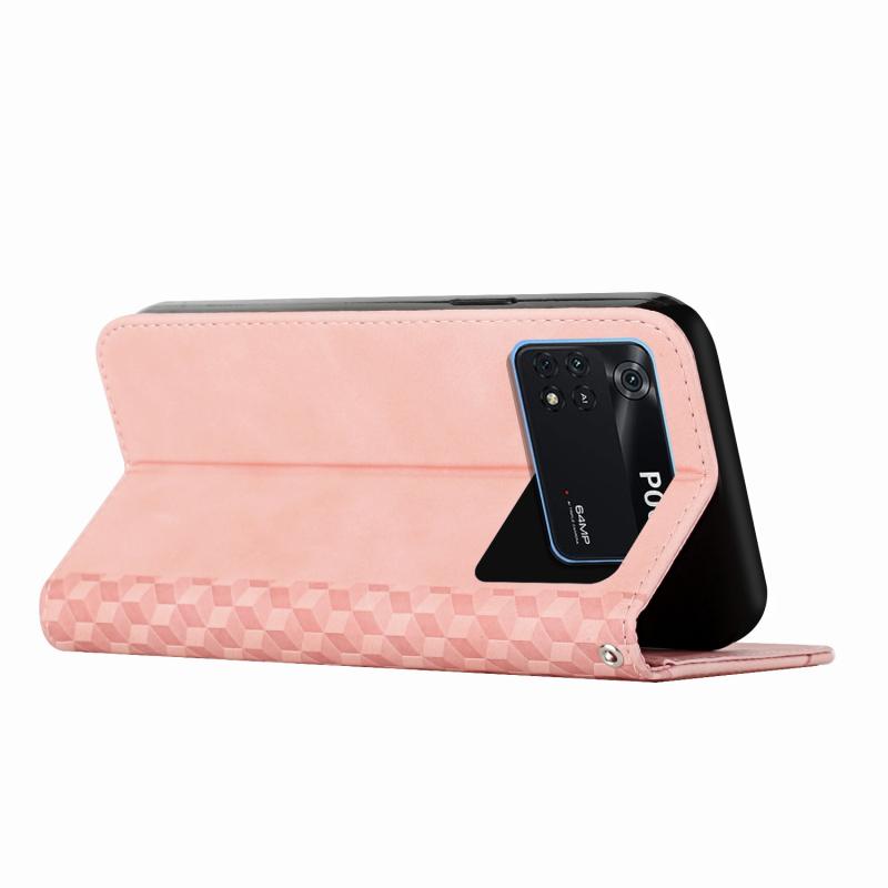 Για Xiaomi Poco M4 Pro 4G Μαγνητική Δερμάτινη Θήκη με Υφή Diamond (Ροζ Χρυσό)